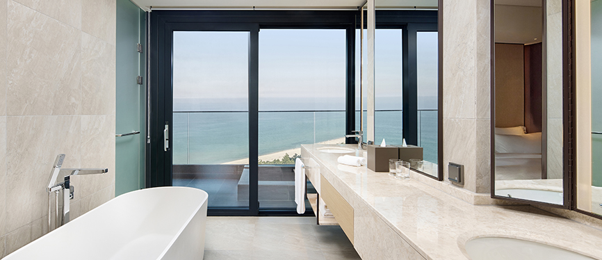 ゆったりとした寝室と居心地のいいリビングで構成された客室でレジデンスの3階~10階にあります。 海とプールをより近くで一望できるスイート客室です。