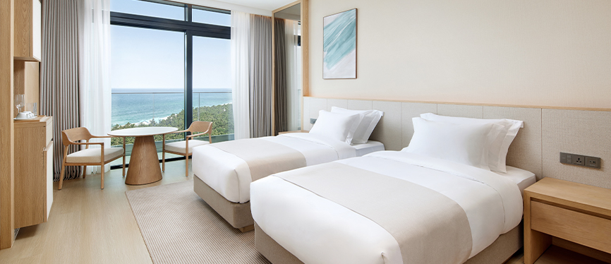 彰显简约设计的基础客房位于酒店主楼5~17层。 配备优质寝具和高级便利用品的现代装修风格的客房。