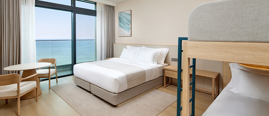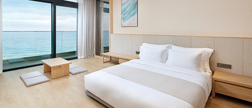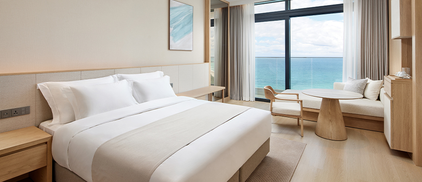 摩登的海景客房位于酒店18~23层。 配备优质寝具和高级便利用品,营造舒适休憩环境的现代风客房。